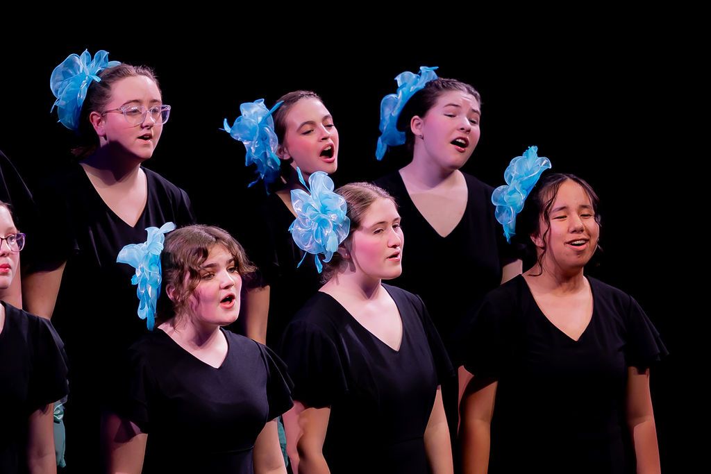 The Angelo Voci ensemble is a prestigious group of young women from high school who have demonstrated exceptional talent in vocal production, stage presence, and expressive performance. They tackle more complex musical pieces and are presented with enhanced opportunities to showcase their talents. As leaders within the choir, they exemplify the values, service, and character that define the choir's spirit.